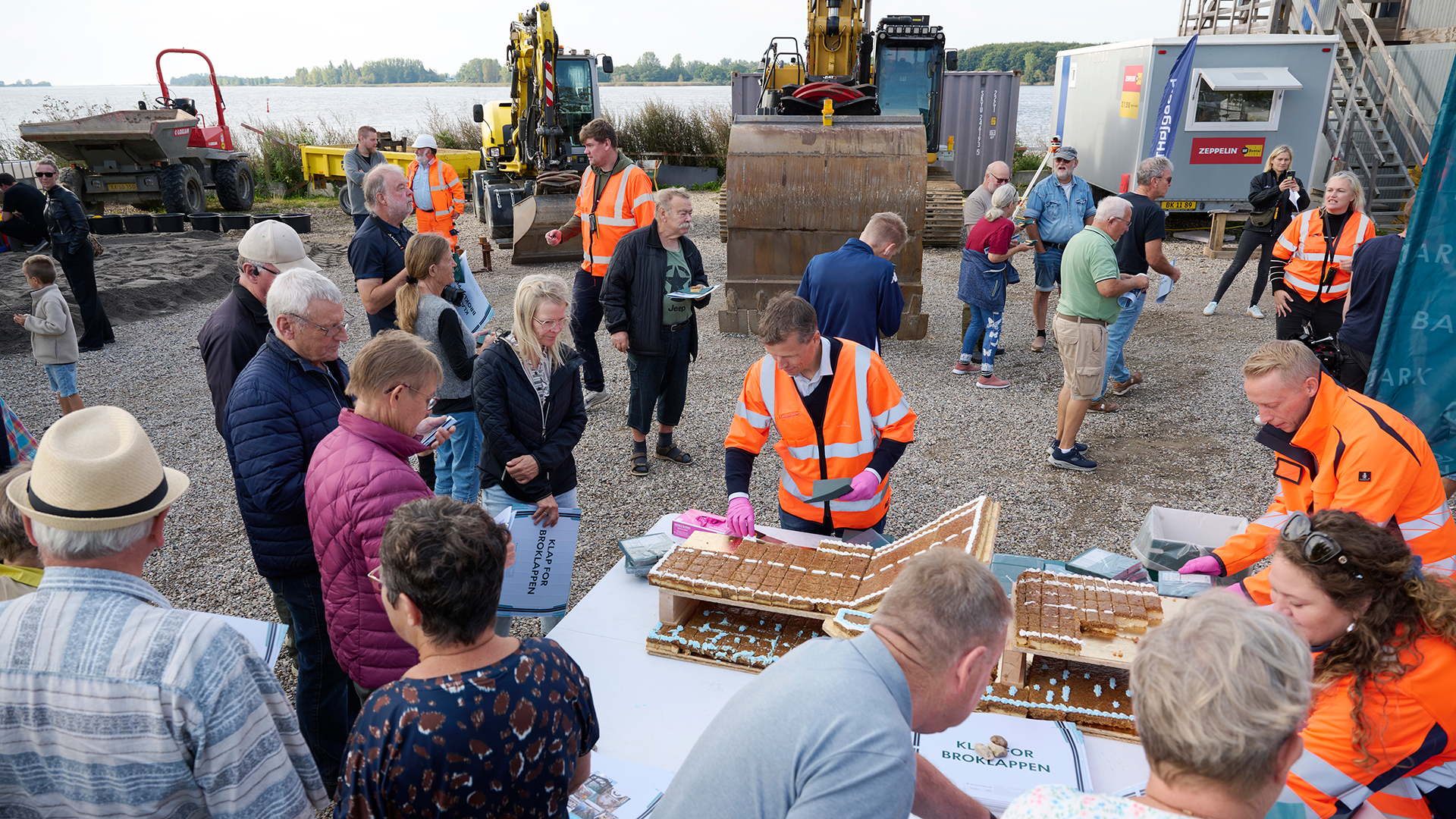 Her kunne gæsterne høre mere om projektet fra Banedanmark og MT Højgaards medarbejdere, der de seneste to år har arbejdet på forberedelserne til montering af den nye broklap og de øvrige 11 brofag, som er lokalt støbt på pladsen.
