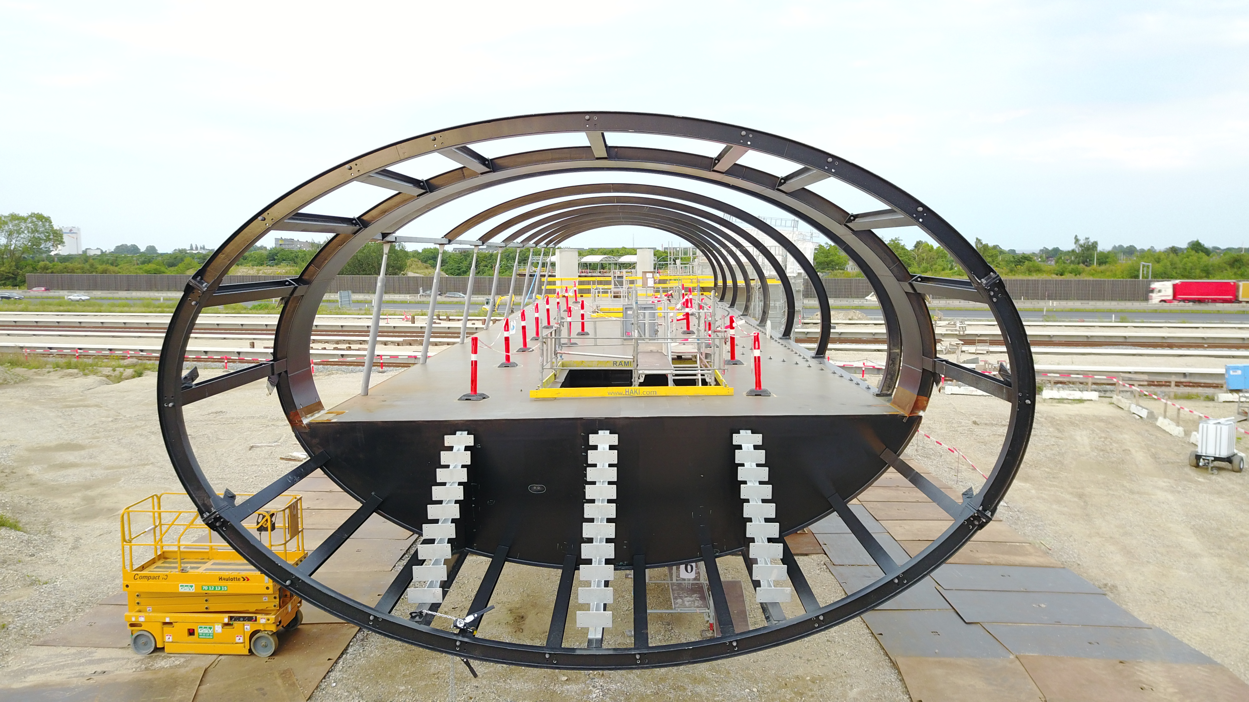 - Gangbroen består af i alt seks stålelementer, som i gennemsnit er 10 meter brede, 30-40 meter lange og måler knap 3 meter i højden. Samlet vejer broen ca. 150 tons.