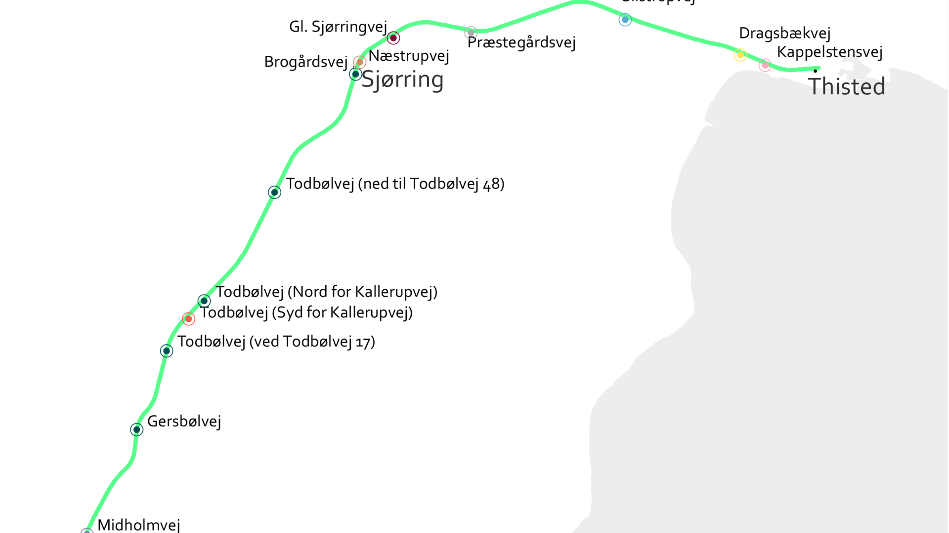 Det nye digitale signalsystem bliver taget i brug etapevis, efterhånden som Banedanmark bliver færdige med de fire etaper. Den første er strækningen fra Thisted til Snedsted som forventes at overgå til det nye signalsystem ved udgangen af februar. Indtil hele strækningen er opgraderet til det nye system, kan passagererne forvente et lidt længere ophold på stationen, hvor man skifter fra de gamle signaler til det nye signalsystem.