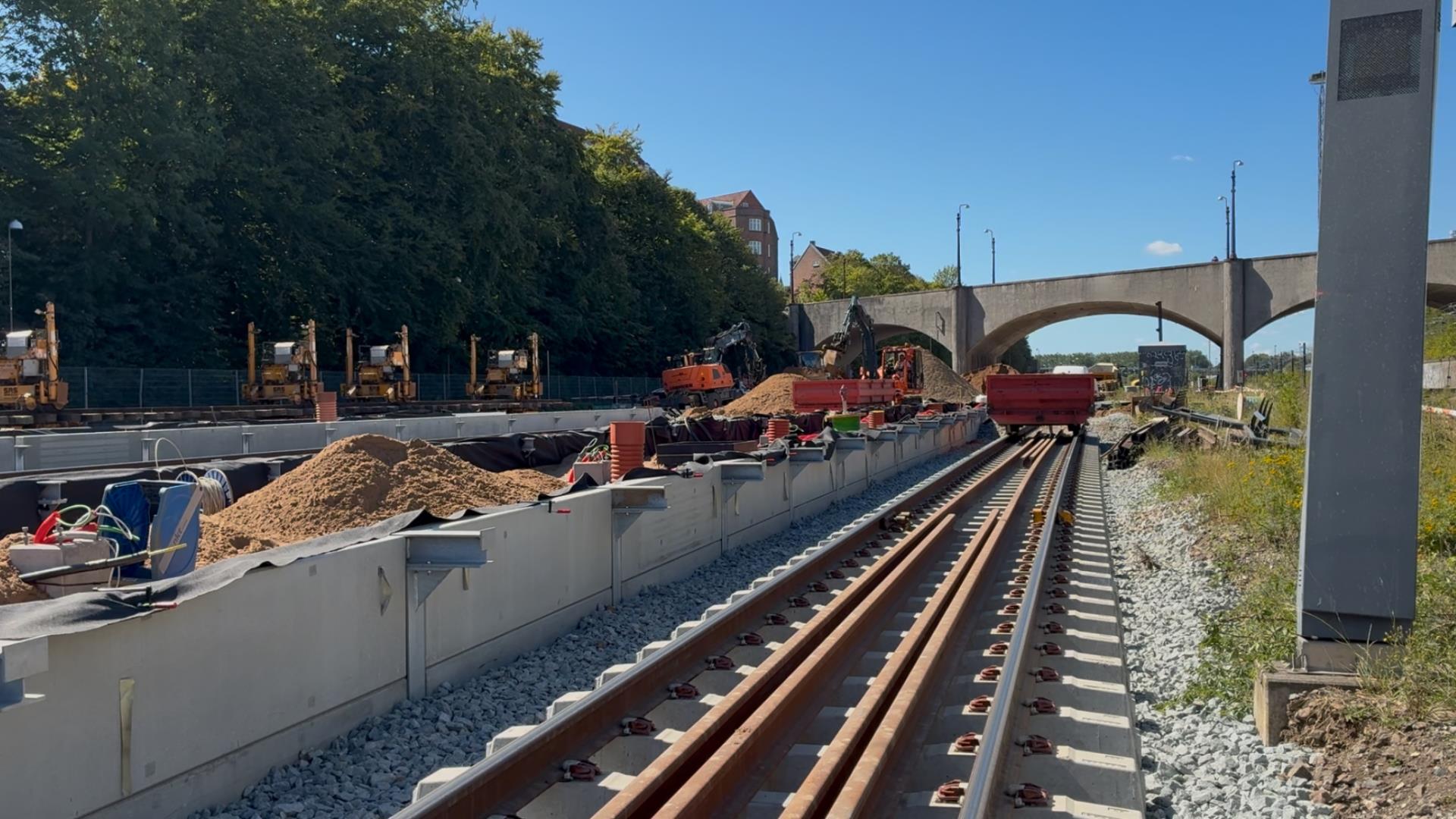 Lige nu arbejder vi med perroner, spor og udskiftning af sporskifter ved banegården, og i slutningen af året og ind i det nye år går vi i gang med at arbejde på broerne, som er et led i elektrificeringen. Vi river broen L i Åbyhøj ned, og forhøjer broen J (Kongsvangsbroen), forstærker fundamenterne på Skanderborgvej-broen, og broerne H og E skal renoveres.