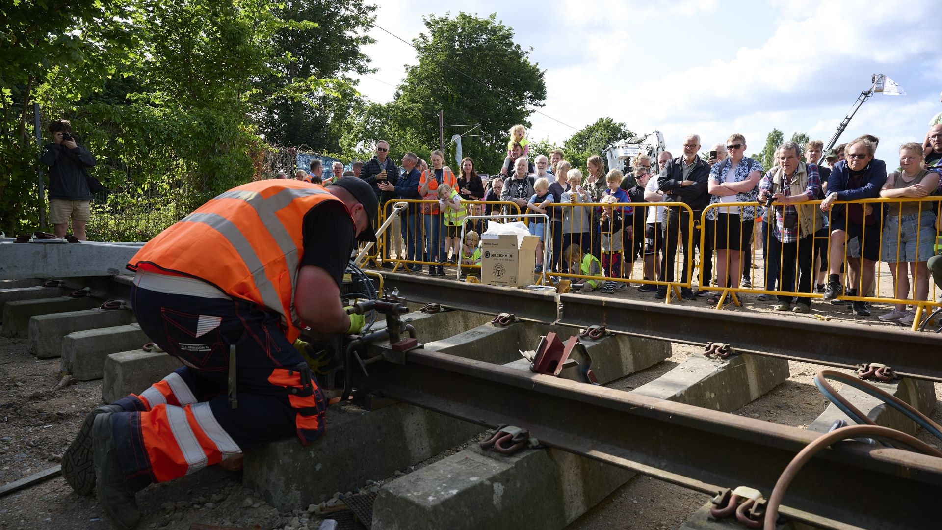 Dagens gæster fik også mulighed for at høre mere om det aktuelle sporfornyelsesprojekt mellem Svanemøllen og Hillerød, og hvordan Troljevej spiller en central rolle i det arbejde. Vores entreprenør på projektet, M.J. Eriksson deltog i arrangementet. De udførte i dagens anledning en termitsvejsning på en jernbaneskinne.