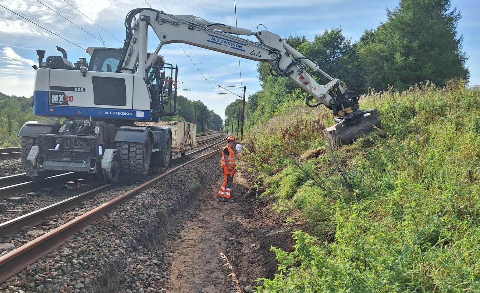 De skinnekørende gravkøer har nemlig fået til opgave at arbejde for naturen mellem Fredericia og Padborg, hvor de allerede er i fuld sving med at forny sporene.