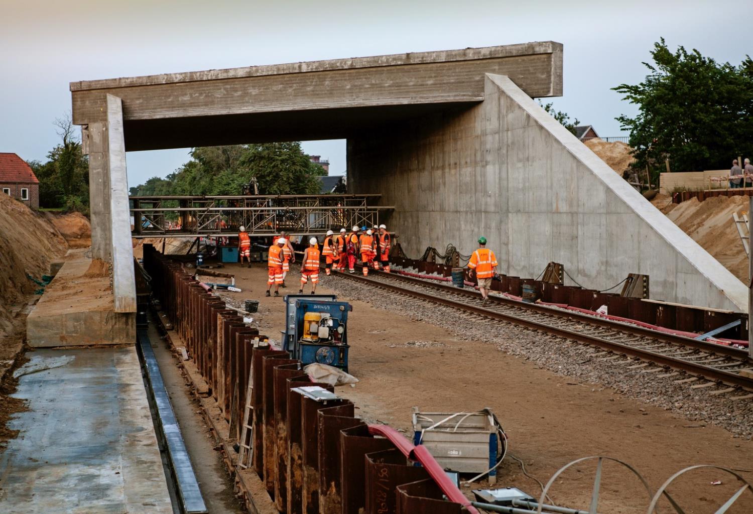 - Banedæmningen genopbygges omkring den nye bro